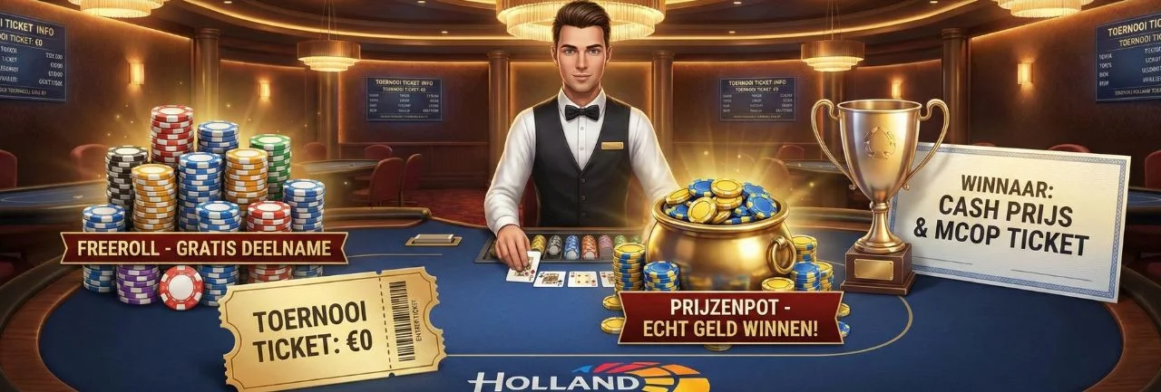 Ja, bij een Freeroll hoef je geen buy-in te betalen. Je speelt mee voor een prijzenpot die door het casino wordt gevuld. Dit is een van de weinige échte ‘no deposit’ opties bij Holland Casino.