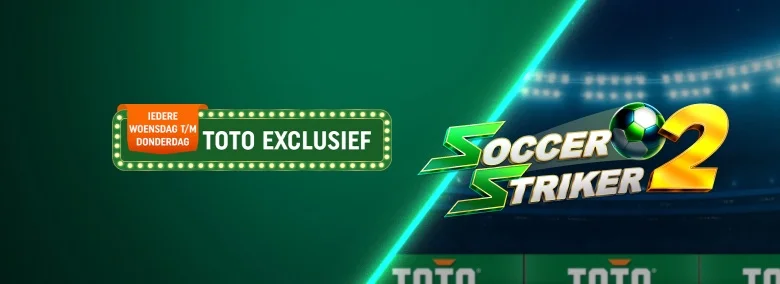 TOTO heeft een exclusieve slotdeal: speel “Soccer Striker 2” en je pakt 20 gratis spins als je in totaal €25 inzet. Je mag dat bedrag in delen spelen, zolang je maar op tijd klaar bent. De actie is te claimen tot en met donderdag 30 april.
