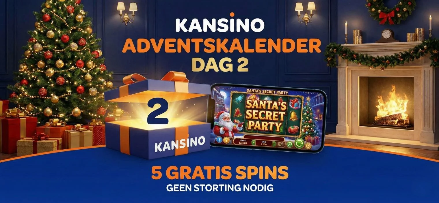 Kansino adventskalender dag 2: claim 5 gratis spins voor Santa's Secret Party