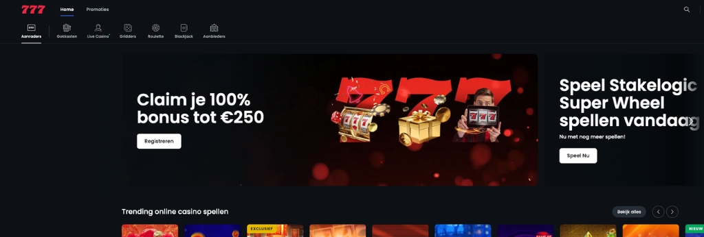 Casino777 biedt meer dan 1.200 spellen, waaronder gokkasten, tafelspellen, live casino en hun eigen trots: Gridders. Deze dice-slots zijn een unieke mix tussen gokkast en dobbelspel – iets wat je zelden in Nederland tegenkomt.