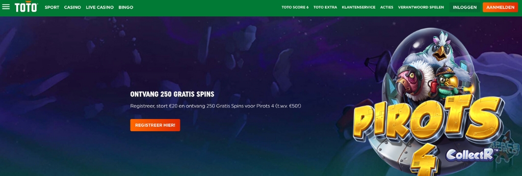 Ja, TOTO biedt nieuwe spelers 20 free spins zonder storting aan. Ook krijg je elke maandag gratis spins.