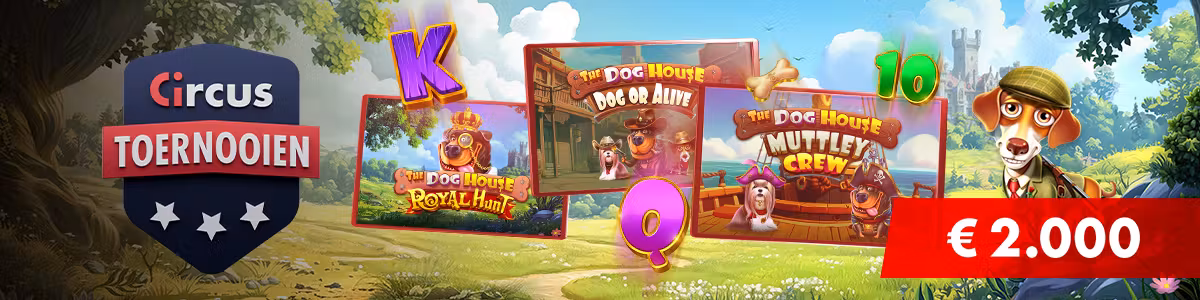 Van 7 t/m 13 november organiseert Circus.nl Casino een spannend Pragmatic Play toernooi met een prijzenpot van €2.000. Tijdens deze actie speel je op geselecteerde The Dog House slots en strijd je om de hoogste win-multiplier (winst/inzet).