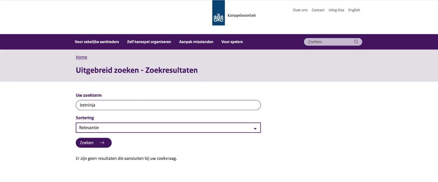 ❌ Conclusie: Nee. BetNinja is een illegaal casino zonder vergunning van de Nederlandse Kansspelautoriteit (Ksa).