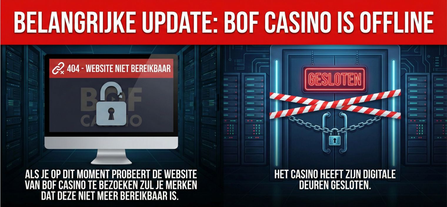 Als je op dit moment probeert de website van BOF Casino te bezoeken zul je merken dat deze niet meer bereikbaar is. Het casino heeft zijn digitale deuren gesloten.
